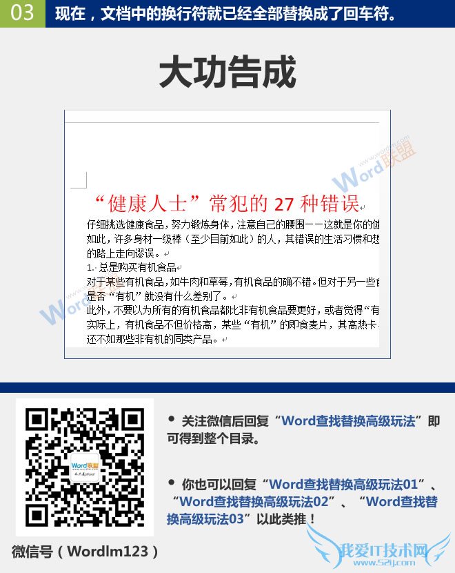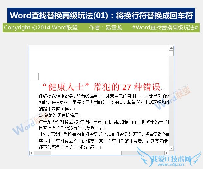 欢迎您访问我爱IT技术网,今天小编为你分享的电脑教程是office系列之word教程:【将换行符替换成回车符:Word查找替换高级玩法(01)[word学习]】,下面是详细的分享!