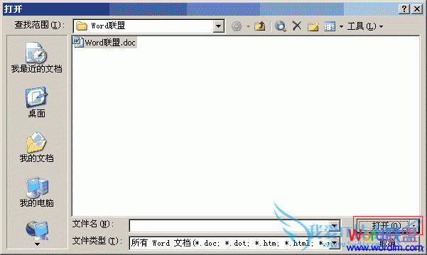②打开Word窗口,单击“文件”中的“打开”命令,在弹出框中选择文档的路径,最后单击“打开”按钮;(如图)