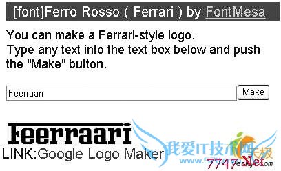 现在开始进入Logo制作阶段,从左侧列表中选择一个Logo,点击相应链接跳转至制作界面,这里我们以汽车类的法拉利Logo为例进行制作。在制作页面中,我们可以看到作为示例的法拉利Logo,文本输入框中黙认显示了法拉利Logo的字母组合(如图2)。