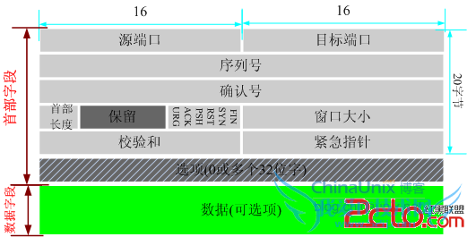 标志字段,SYN=1、ACK=0表示该数据段没有使用捎带的确认域。