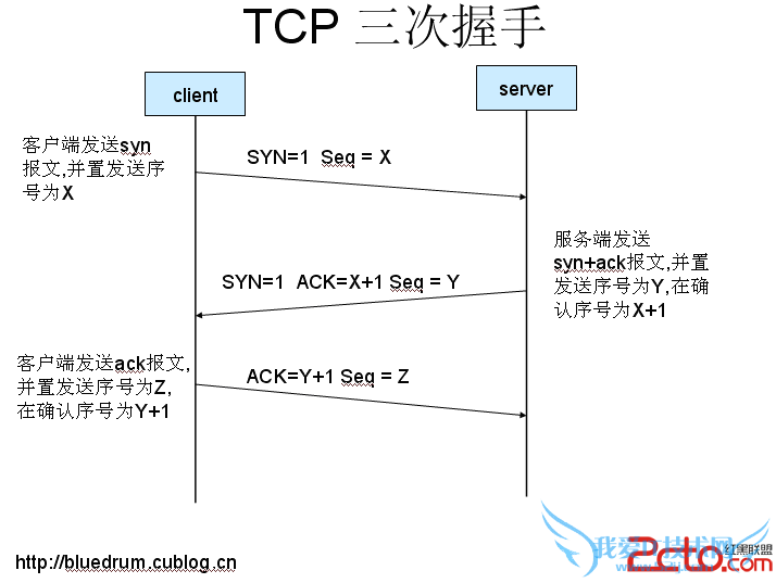 客户端发送一个TCP的SYN标志位置1的包指明客户打算连接的服务器的端口,以及初始序号X,保存在包头的序列号(Sequence Number)字段里。