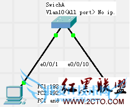 SwitchA(Config-Vlan10)#switchport interface ethernet 0/0/1-24