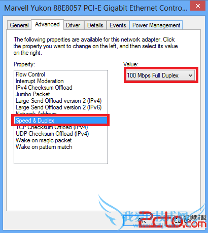 虽然不能关闭这个NEXT,但是可以采取另一种方式解决问题,那就是手动调整网卡工作在100MB全双工模式。在Windows下操作为,右键网卡属性。