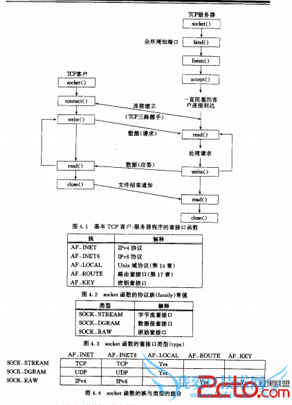 建立TCP连接的日常系统类比是电话系统[Nemeth 1997].socket函数等同于有电话可用.bind用于告诉其他人你的电话号码,让他们可以向你打电话.listen是打开电话振铃,它使你可以听到一个外来的电话.connect要求你知道另一方的电话号码并拨打它.accept是被呼叫回电话.从accept返回客户的标识(即客户的IP地址和端口号)类似于让电话机的呼叫者ID功能部件显示打电话人的电话号码.然而有点不同的地方是:从accept返回客户的标识是在建立连接以后,而呼叫者ID功能部件显示打电话人的电话号码是在我们选择接或不接电话之前.如果使用域名系统(第9章),那么提供了一种类似于电话薄的服务.gethostbyname类似于在电话薄查找个人的电话号码.gethostbyaddr则类似于有一种电话薄按电话号码排序