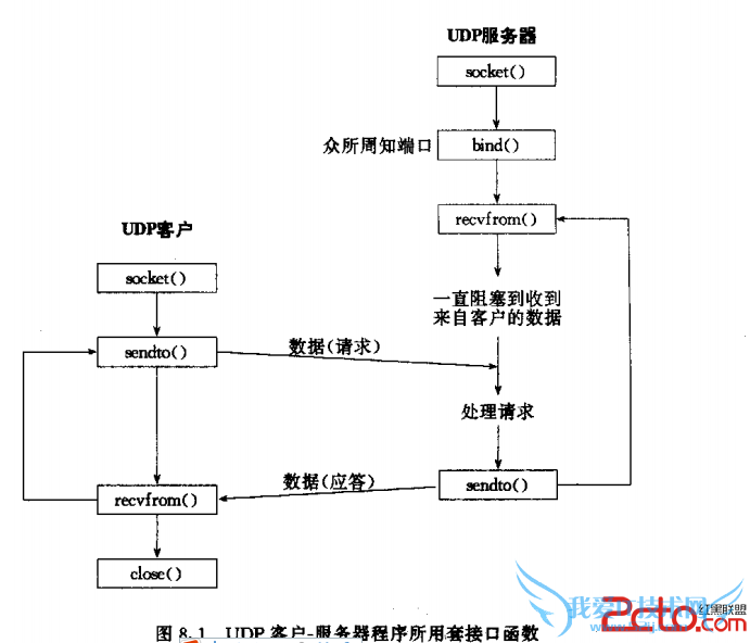 客户不与服务器建立连接,它只管用函数sendto给服务器发送数据报,此函数要求目的地址(服务器)作为其参数。类似的,服务器不从客户接受连接,它只管调用函数recvfrom,等待来自其客户的数据到达。与数据报一起,recvfrom返回客户的协议地址,所以服务器可以发送响应给正确的客户。