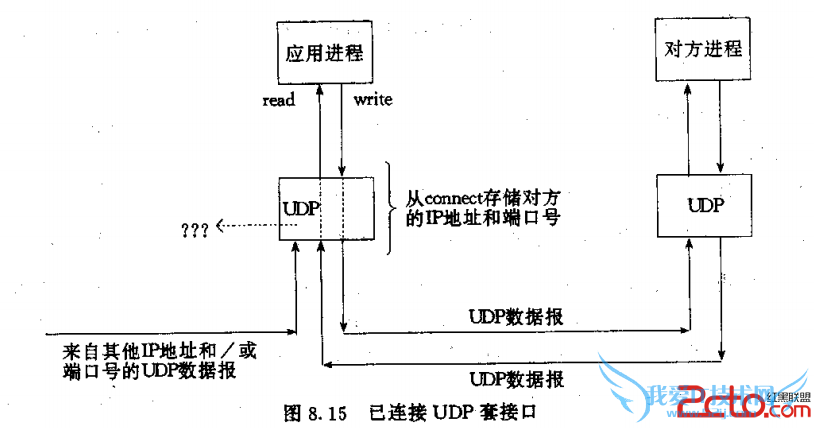 我们可以给UDP套接口调用connect,但这样做的结果却与TCP连接豪不相同;没有三路握手过程。内核至少记录对方的IP地址和端口号,它们包含在传递给connect套接口地址结构中,并立即返回给调用进程。