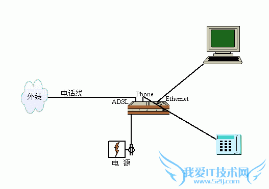 在办理ADSL上网手续的时候,购买的设备大致包括一台ADSL Modem、一根网线、两根电话线。我们将201电话线和ADSL Modem的ADSL端口连接(图1),用电话线将ADSL Modem的Phone端口和电话连接(这样就可以实现上网、电话两不误),用网线将ADSL Modem的Ethernet端口和电脑的网卡连接。