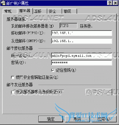 这里以Outlook为例进行说明。进入Outlook,按顺序选择:工具-->账号-->邮件账号-->服务器,在SMTP和POP3服务器 地址栏上均填上192.168.1.1, "账号名"中填入邮件提供商提供给你的邮箱账号后面紧接着用"#"号代替"@",在"#"后面接着是邮件收件服务器的网址。例如你的邮件地址是[email?protected],邮件收件服务器是pop3.mymail.com,那么这里就填入abcd#pop3.mymail.com,密码栏填入这一账号的密码。再转到 "连接"设置,选择"使用局域网(LAN)连接",最后选择"确定"。