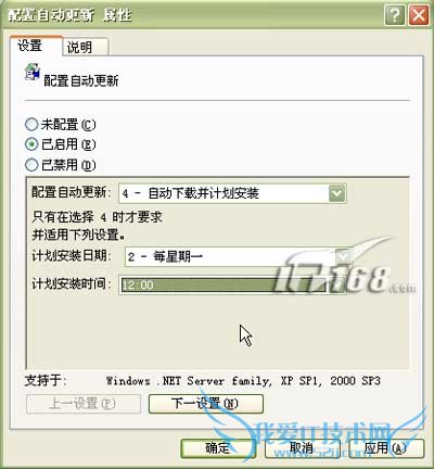 提示:在工作组环境中,小强要手工为每台客户机进行SUS Client配置,虽然麻烦些,但对于小型局域网来说还是可以接受的。如果你网络规模较大,建议采用域环境,这样就只需要在域控制器中进行域组策略配置即可,免去了配置客户机的麻烦。