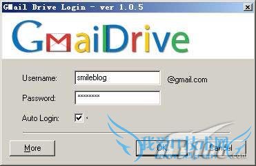 这款只有100多k的软件会在你的硬盘上生成一个虚拟硬盘分区GMail Drive。使用前要输入你的Gmail帐号和密码,登陆后可以切换到其他帐号或注销退出。