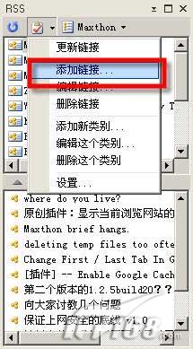 点击Maxthon工具栏上的RSS Feed,在Feed上有個打勾图示按下“添加链接”,在URL右填入“https://你的帐号%40gmail.com:你的密码@gmail.google.com/gmail/feed/atom”,点击确定后,你就可以查看自己的Gmail邮件的标题了。