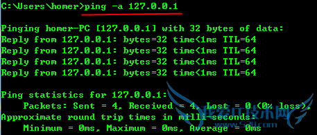 -a 将地址解析为计算机名。示例(homer-PC 为计算机名):