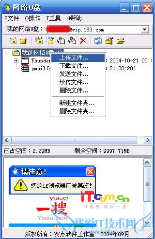 欢迎您访问我爱IT技术网,今天小编为你分享的电脑教程是网络协议方面的经验知识教程:把邮箱DIY为网络U盘,下面是详细的分享!