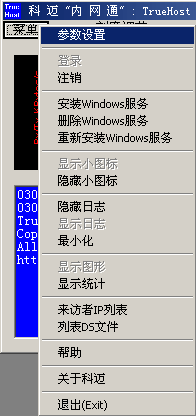 第一步,运行truehost.exe,用鼠标单击“菜单”,选择参数设置: