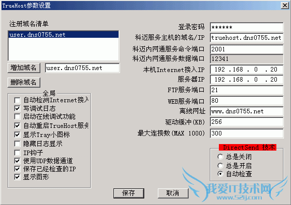 TrueHost使用由科迈公司首创的DirectSend隧道技术,部分访问者可以直接从内网网站下载数据,不再使用我们的代理服务器做数据中转,内网用户的上网带宽可以得到充分的利用。访问者不需要使用特殊的客户端工具,使用常见的浏览器、FTP客户端、邮件客户端等软件,即可不经数据中转而直接访问内网网站。(这个功能能否使用,与内网用户当地的ISP和访问者当地的ISP有关。我们的软件会自动检测。)