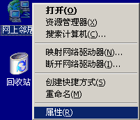 第一步,在“网上邻居”上按鼠标右键,选择“属性”: