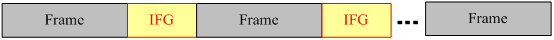 以太网的发送方式是按照一个帧一个帧来发送的,帧与帧之间需要间隙,叫做帧间隙(InterFrameGap,IFG)。IFG的长度是96bit(12 Byte),也称为以太网最小帧间隙。此外还可能有Idle时间。