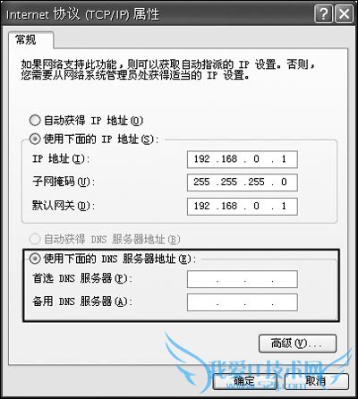 应用:在Windows中要使用DNS协议,只要设置相应的DNS服务器地址即可。具体的方法同IP地址的设置:比如在Windows XP中,首先,打开“本地连接”属性窗口,在“常规”选项卡中双击“Internet协议(TCP/IP)”;然后在打开的属性窗口中,选中“使用下面的IP地址”设置IP地址、子网掩码以及默认网关,选中“使用下面的DNS服务器地址”(如图),在首选DNS服务器和备用DNS服务器中输入相应的DNS服务器地址;最后,连续单击“确定”按钮即可。