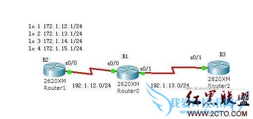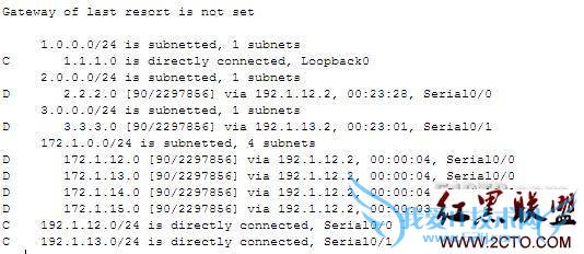2、如图所示在R2上添加了一些环回口从而运行eigrp协议,R1学习到得路由信息是
