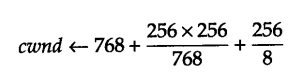 当ACK 769到达时,我们不再处于慢启动状态,而是进入了拥塞避免状态。新的cwnd值按以下方法计算: