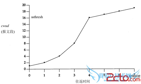 4) 当新的数据被对方确认时,就增加cwnd,但增加的方法依赖于我们是否正在进行慢启动或拥塞避免。如果cwnd小于或等于ssthresh,则正在进行慢启动,否则正在进行拥塞避免。慢启动一直持续到我们回到当拥塞发生时所处位置的半时候才停止(因为我们记录了在步骤2中给我们制造麻烦的窗口大小的一半),然后转为执行拥塞避免。