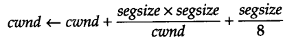 拥塞避免算法要求每次收到一个确认时将cwnd增加1/cwnd。与慢启动的指数增加比起来,这是一种加性增长(additive increase)。我们希望在一个往返时间内最多为cwnd增加1个报文段(不管在这个RTT中收到了多少个ACK),然而慢启动将根据这个往返时间中所收到的确认的个数增加cwnd。
