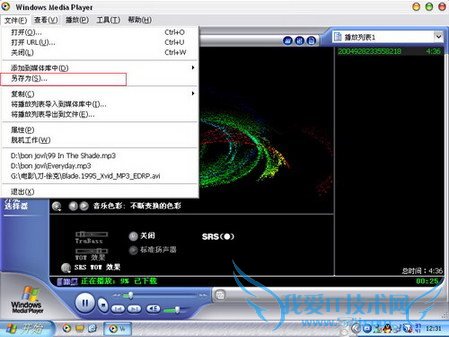 很多个头较小的文件,如MP3、10来秒的广告小视频等,可以等在线播放完成后(即下面的缓冲进度满格),在媒体播放器菜单里点击“文件→另存为”(图1),选好目录后,回车或点击“确定”就可以保存到你的硬盘里了。