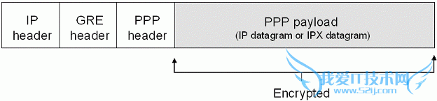 这时,我们需要来了解下PPTP拨号VPN的整个运作的情况。简单的来说,用户首先需要对服务器进行拨号,用到就是PPTP协议里常用的TCP- 1723端口,当拨号成功以后,会在本地与PPTP服务器之间建立一个GRE隧道,用于传输PPP帧中的IP报信息。如下图所示为PPTP的封装格式。