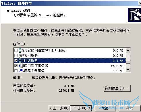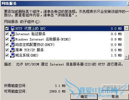 由于我们这里需要借助Windows服务器系统内置的DHCP服务器动态配置功能,才能实现集中配置网络参数的目的,因此我们首先需要检查服务器系统中是否已经安装好了DHCP服务器组件,要是该组件还没有安装的话,可以依次单击“开始”/“设置”/“控制面板”命令,打开系统的控制面板窗口,双击其中的“添加或删除程序”图标,再单击其后界面中的“添加/删除Windows组件”按钮,进入到Windows组件向导窗口,选中该窗口中的“网络服务”选项(如图1所示),再单击该界面中的“详细信息”按钮,打开如图2所示的列表界面,看看该界面中的“动态主机配置协议(DHCP)”选项是否选中,要是还没有选中的话,那就表明当前服务器的DHCP服务组件并没有安装;此时,我们可以选中“动态主机配置协议(DHCP)”选项,同时单击“确定”按钮,随后系统将会自动安装并配置好该服务组件。