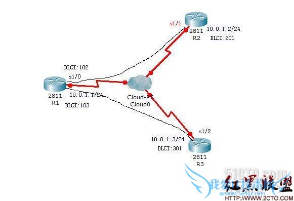 本次实验是NBMA网络上,广播模式下的OSPF,网络拓扑是部分互联的。
