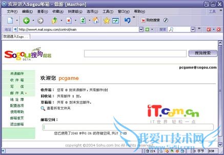 欢迎您访问我爱IT技术网,今天小编为你分享的电脑教程是网络协议方面的经验知识教程:真正免费的2G邮箱完全试用,下面是详细的分享!