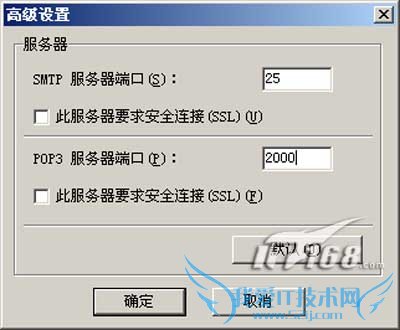 点击“高级”按钮,在弹出窗口中将“POP3服务器端口”设置为“2000”。