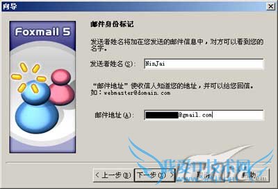 接下来设置发送者姓名和Gmail地址,对于Yahoo和MSN、Hotmail同样输入形如[email?protected]的地址。