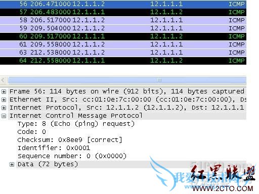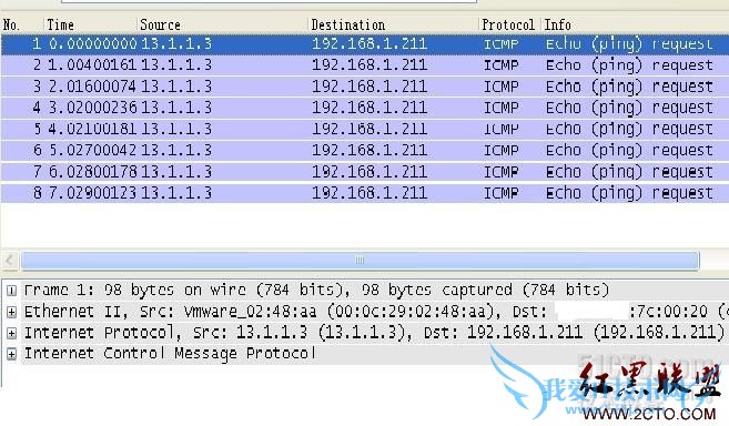没有回复icmp的查询报文,只有发出89个packet。当然这里有R2将自己的mac做为destination主机的mac。