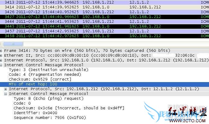 由网关回复的需要分片但设置不能分片的icmp差错报文。