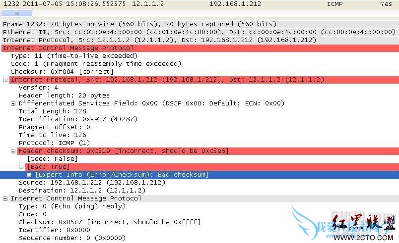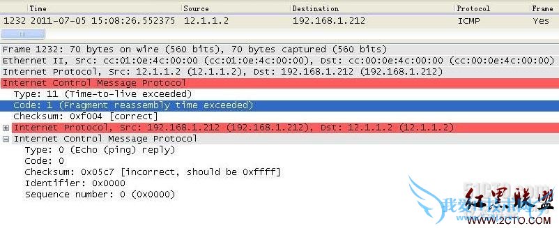 这个包具体是校验错误,却以ttl超时的回复源设备。