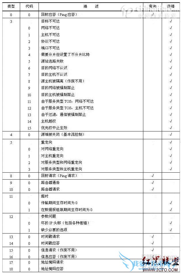 ICMP的报文类型与代码的含义:(这张图片是搜索得来,如果有侵权行为,请及时通知我。)
