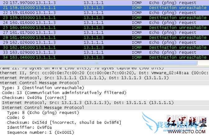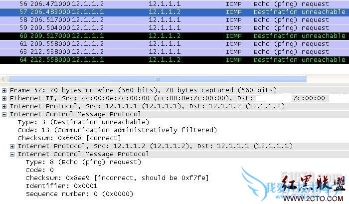 具体是type=3,code=13的,由于过滤,导致的目的不可达。将source报文的ip首部及产生差错的ip数据报的前8个字节(这里是icmp的头部:标识符与序列号)
