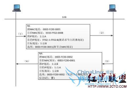 (1)NUD的NS报文的目的MAC是目的节点的MAC地址;目的IPv6地址为NodeB的单播地址,而不是被请求节点组播地址。