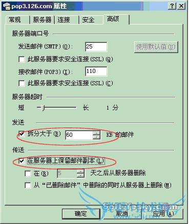 这一步很关键,如果不设置就无法发出信件,再点高级标签。看到“发送”选项,有一个“拆分大于”KB的复选框。(如图2)