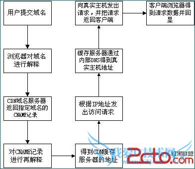 通过以上的分析我们可以得到,为了实现既要对普通用户透明(即加入缓存以后用户客户端无需进行任何设置,直接使用被加速网站原有的域名即可访问),又要在为指定的网站提供加速服务的同时降低对ICP的影响,只要修改整个访问过程中的域名解析部分,以实现透明的加速服务,下面是CDN网络实现的具体操作过程。