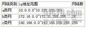 由于分配不合理以及IPv4协议本身存在的局限,现在互联网的IP地址资源越来越紧张,为了解决这一问题,IANA将A、B、C类IP地址的一部分保留下来,留作局域网使用的IP地址空间,保留IP的范围如附表所示。