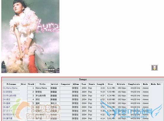 重新启动一次edna,显示效果如图10所示,可以看到网页中显示了关于mp3文件的相关信息,如作者,专辑名,长度,大小,码速等等。