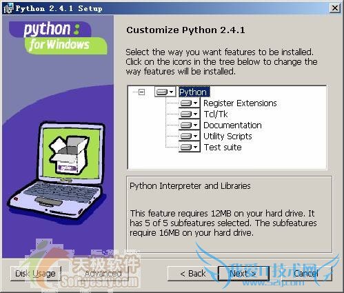 图3中显示选择安装哪些Python的组件,保持默认设置,点击Next。