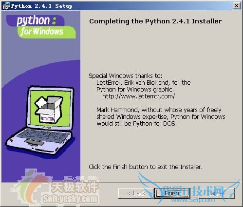 图5显示了安装完成的对话框,至此,本机上即安装上了Python语言的解析器及相关组件,已经可以进行Python语言的编程和解析运行了。