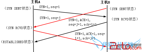 从图中可以看出,一个双方同时打开的传输连接需要交换4数据段,比正常的传输连接建立所进行的三次握手多交换一个数据段。此外要注意的是,此时我们没有将任何一端称为客户或服务器,因为每一端既是客户又是服务器。