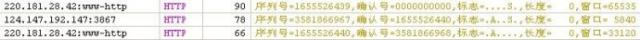 第二次握手:192.168.1.123收到请求后要确认联机信息,向192.168.1.116发送ack number=3626544837,syn=1,ack=1,随机产生seq=1739326486的包;