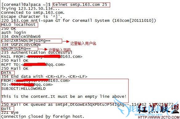 注意,空行的.意味着结束正文。邮件的结束标志是“回车+.+回车”