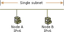 下图显示使用链路本地地址的单个子网上两个节点的配置。