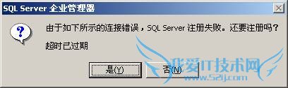 如果遇到第三个错误,一般而言表示客户端已经找到了这台服务器,并且可以进行连接,不过是由于连接的时间大于允许的时间而导致出错。这种情况一般会发生在当用户在Internet上运行企业管理器来注册另外一台同样在Internet上的服务器,并且是慢速连接时,有可能会导致以上的超时错误。有些情况下,由于局域网的网络问题,也会导致这样的错误。